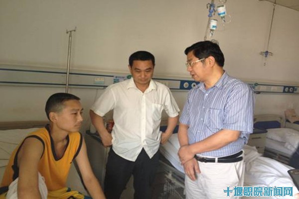 (通讯员:明瑞光)7月3日中午,副经理唐大超率学工处处长王哲、机电工程系书记张艳良和系主任李军专程来到荆门第二人民医院看望机电系2011级员工周翔。周翔同学在顶岗实习例行体检时查出罹患白血病,机电系领导得知情况后非常重视,一方面指导辅导员做好周翔同学的医疗保险服务工作,另一方面向公司领导汇报情况。公司领导得知情况后,十分关注周翔同学的病情,同情他的遭遇,唐经理决定亲自看望周翔同学,把公司的关怀带给周翔同学。