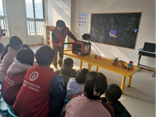 同学们来到辖区内的康音特殊儿童公司,为“来自星星的孩子们”开展团体辅导活动,向孩子们展示3D打印技术,并打印出富有创意又有用电安全知识的小玩具送给他们。志愿者们还利用机械玩具开展遥控编程知识普及活动,他们与孩子们一起玩耍、做游戏,与他们细心交流,关心询问他们的学习、生活和健康情况,让小朋友们感受到了爱和陪伴,活动室里不时传出孩子们的笑声。