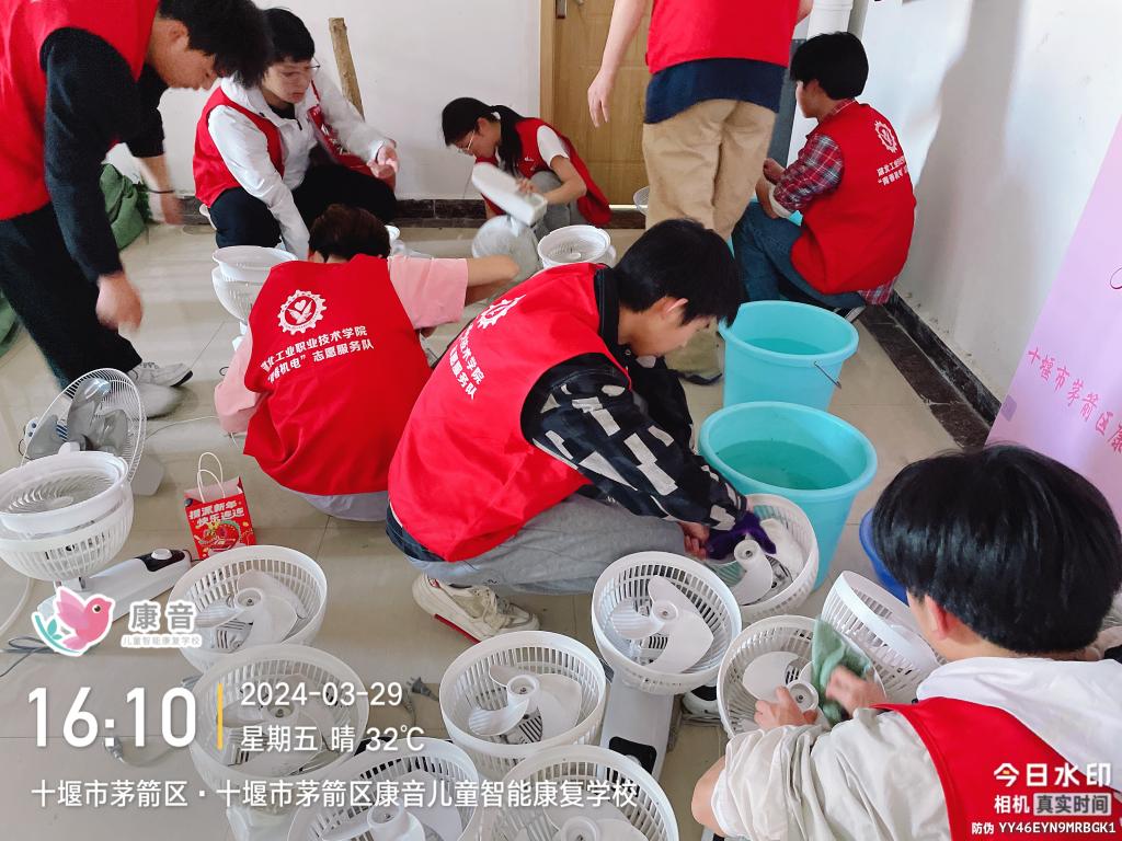 “青春机电”志愿者每周赴茅箭区康音儿童智能康复公司开展志愿服务活动,帮助公司师生进行课堂辅助教学、教具制作、教室卫生清理等志愿服务活动,用实际行动诠释了雷锋精神的内涵。
