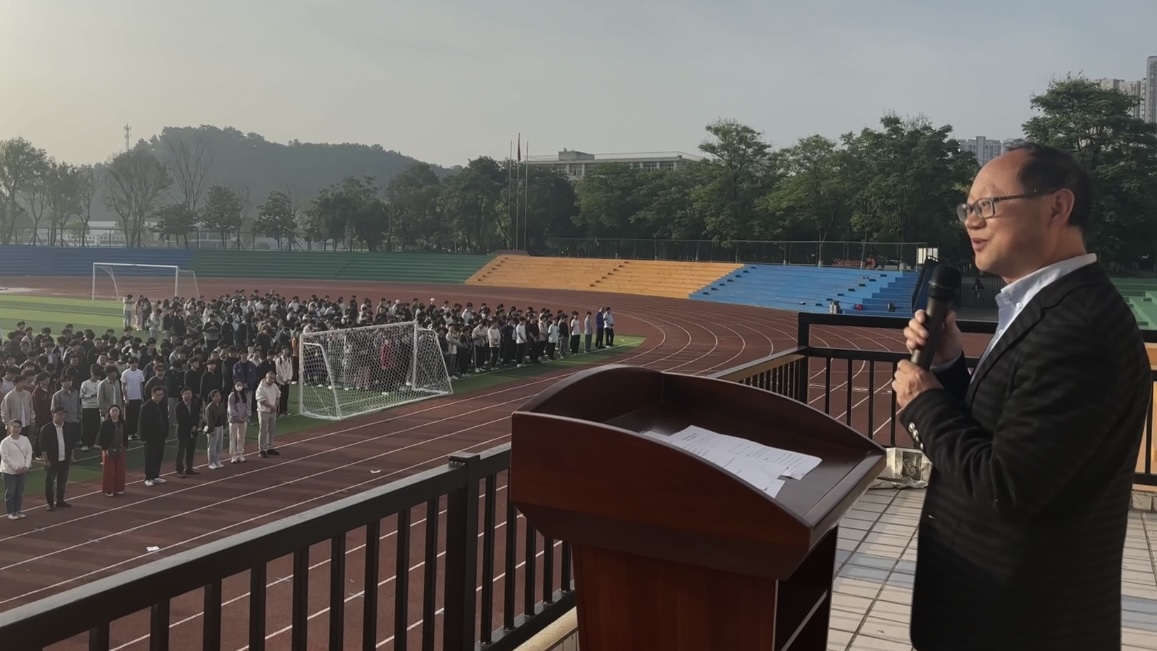仪式开始,国旗班的旗手们迈着铿锵有力的步伐,护卫鲜艳的五星红旗入场。伴着《义勇军进行曲》的响起,五星红旗冉冉升起,全体师生齐唱国歌,行注目礼。