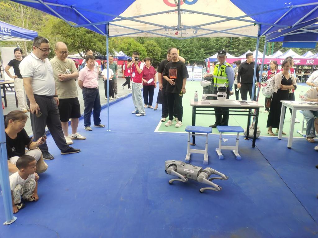 在新生接待现场,新生辅导员们耐心细致地为新生们登记信息、答疑解惑、提供咨询服务。身穿统一工作服的志愿者们各司其职,协助新生在体育馆办理入学手续、搬运行李入宿,“一对一”全程引导新生完成报到事宜。作为今年全校招生专业人数最多的工业机器人专业,迎新现场还向新生和家长展示了机器狗、智能机器人、下棋机器人等高科技产品,引来众多新生和家长围观。结合无人机专业,公司还联合湖北箭飞航空举办了无人机展览,为现场师生讲解无人机专业知识、应用领域和发展前景,现场好不热闹。