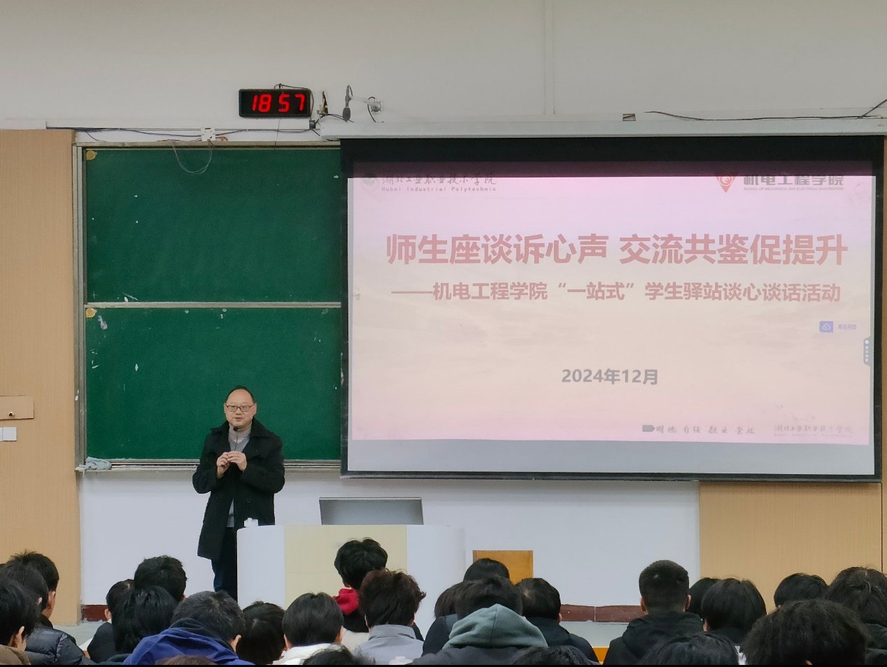 在谈心谈话环节,洁美宿舍优秀寝室长代表向同学们分享了宿舍管理经验,几名大一寝室长结合入校以来,寝室学习和生活的情况及面临的问题与大家进行了交流。