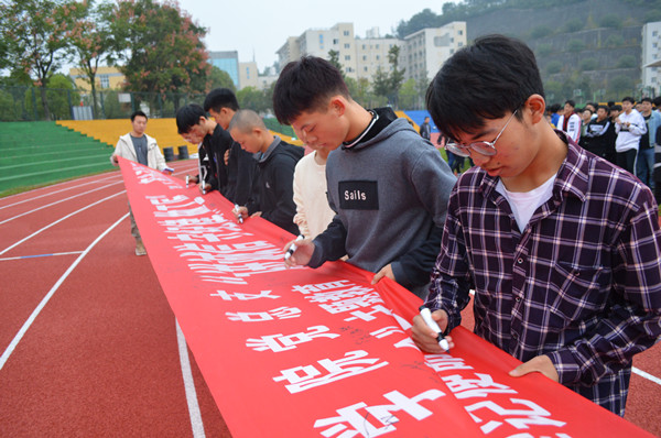 随后bw必威西汉姆联官方网站全体师生在“讲诚信,守纪律,做工匠”的横幅上进行了签名活动。