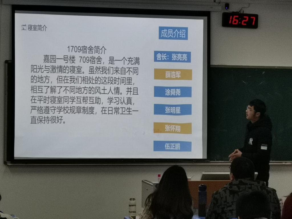 本次比赛由每个班级选出的优秀寝室代表各自通过以演讲为主,ppt为辅的方式来介绍自己的室友和宿舍文化。同学们精彩的演讲展现了一个个温馨的“家”。一张张优美的照片传递出一个个温馨的故事,让我们看到了舍友之间的情谊,看到了一个“和谐,感恩,文明”的宿舍氛围。