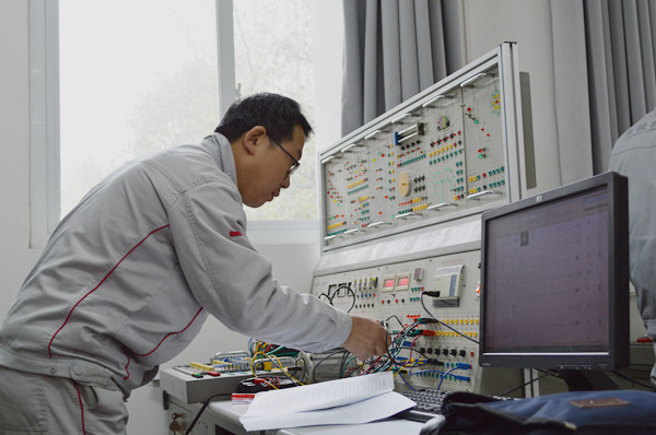 计算机辅助设计赛项采取个人赛的方式,在公司中德技术员班计算机辅助设计一体化教室进行,利用UG10.0/CatiaV5/SolidWorks2016/AutoCAD2018等计算机辅助设计软件进行2D工程图抄绘与3D数模设计。比赛中,选手们精神状态饱满,计算机操作熟练,充分展示了选手们精湛的计算机辅助设计应用技能水平。机电一体化赛项分维修钳工和维修电工2个分项,均采取个人赛方式,赛项以理论考试(30%)和实践操作(70%)进行个人成绩积分。其中,维修钳工分项增设有电工理论,维修电工分项增设有钳工理论,充分体现了现代企业对综合型高技能人才的需要。